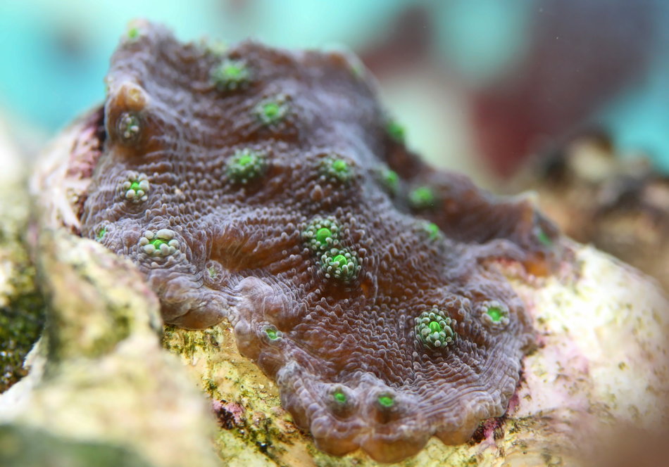 Die Chalice (Echinopora lamellosa) habe ich als ein kleines Fragment geschenkt bekommen und auf einen Stein geklebt. Die Chalice ist jetzt 1 1/2 Monate in meinem Becken und schon etwas gewachsen. Wer mit einem kleinen Fragment startet, muss sich in Gedeuld üben 😉