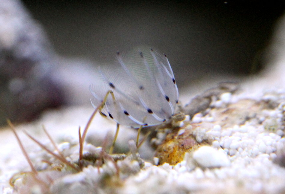 In einem Meerwasseraquarium verschwindet mit den Jahren die Vielfalt an kleinen Organismen, die Artenvielfalt verarmt mit der Zeit. Deshalb freue ich mich immer, wenn durch Neuzugänge an Tieren, auch der eine oder andere Organismus als Blinder Passagier dazukommt (Natürlich freue ich mich nur, wenn es keine Schädlinge sind). Mit geschenkten Caulastrae Korallen kamen auch ein paar kleine Sand bewohnende Röhrenwürmer in mein Becken, die ich schon viele Jahre nicht mehr hatte und nur aus den Anfangsjahren als Meerwasseraquarianer kannte. Ich hoffe sie werden nicht gleich wieder weggefressen und machen mir noch einige Zeit Freude.