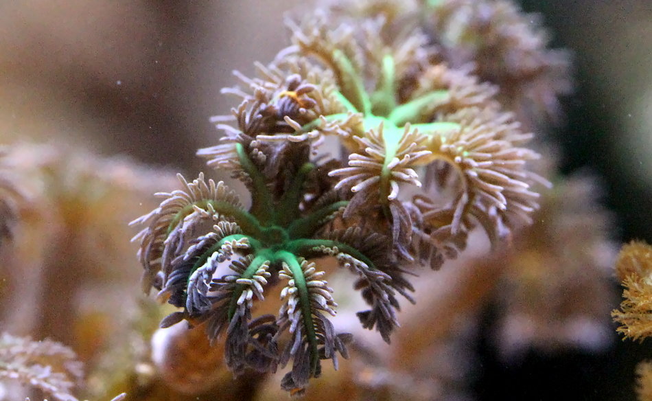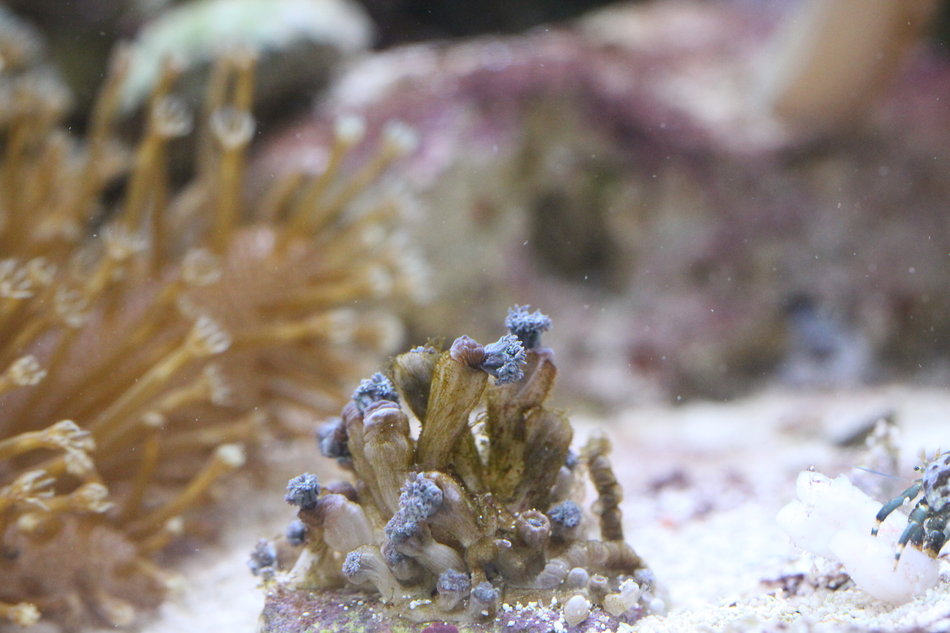 Clavularia tricolor hatte ich vor vielen Jahren schon einmal in meinem Becken. Jetzt habe ich mir nach langer Zeit mal wieder diese hübschen Röhrenkorallen gekauft. Ich habe gelesen, dass sie nicht zu starke Strömung benötigen und sich über Ausläufer vermehren. Frisch eingesetzt nach dem Kauf, sahen sie noch sehr mirkrig aus, aber schon am nächsten Tag waren die Polypen schön geöffnet. Ich bin gespannt, ob sie sich bei mir halten und auch vermehren. Ich würde mich sehr darüber freuen 😉