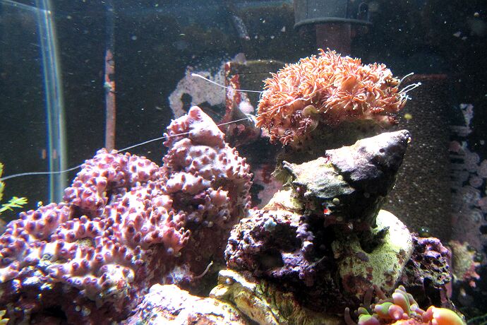 Die Galaxea (LPS-Koralle) erstaunt mich manchmal mit ihren sehr langen Kampf-Tentakeln.