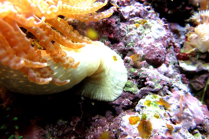 Sie Sandanemone wandert mit ihrem Fuss auf den Steinen